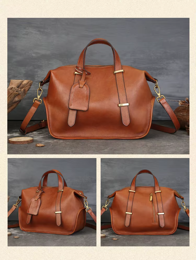 Johnature Vintage Solid Color Genuine Leather Handbag 2025 New Large Capacity Boston Women's Bag Casual Shoulder Bags